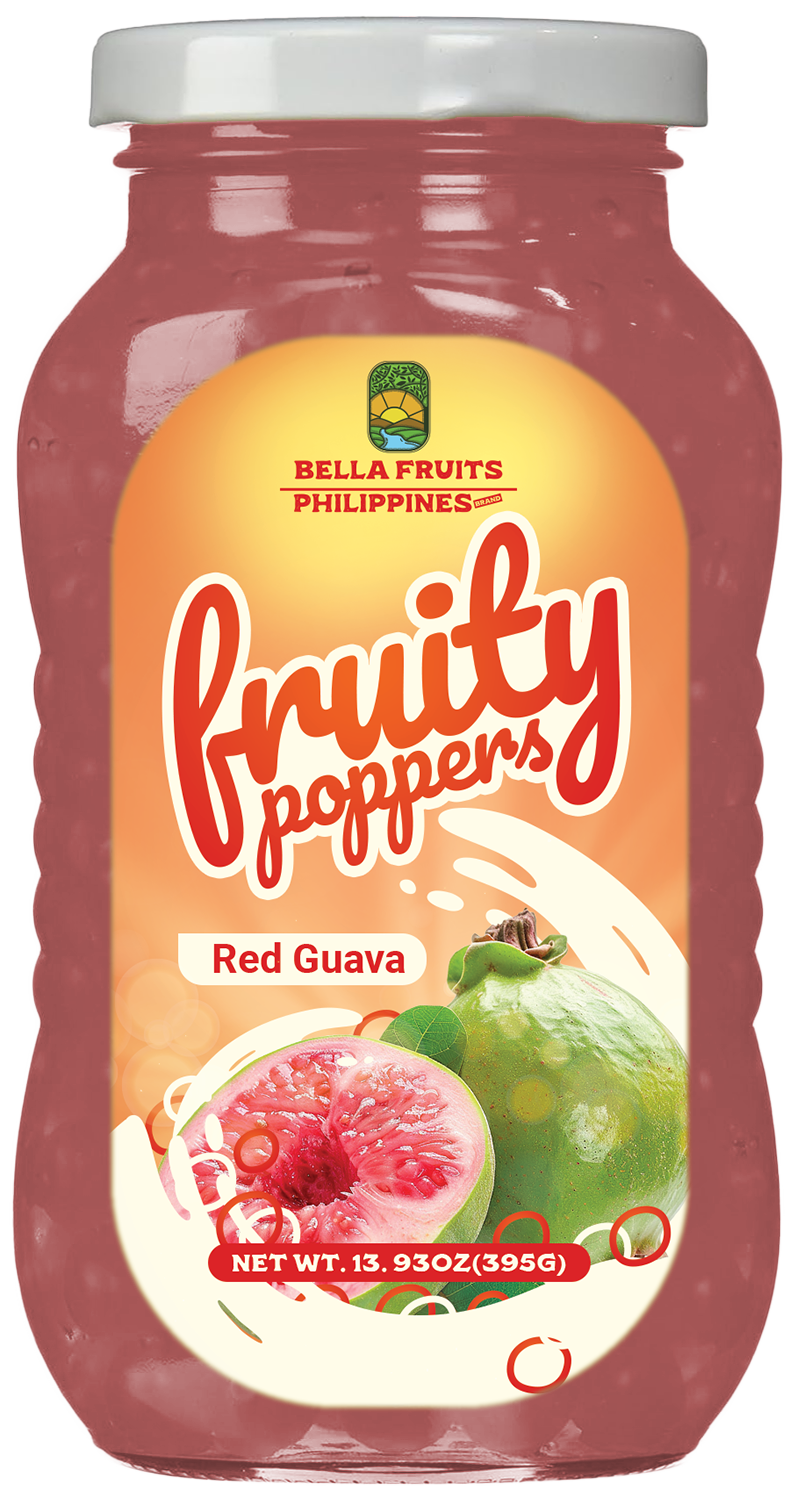 “pops” and oozes inside your mouth. Fruity Poppers – Guava is ideal with cold drinks, shaved ice cream, frozen yoghurt. Can also be added to your pudding jelly and can be a garnish for your cake.