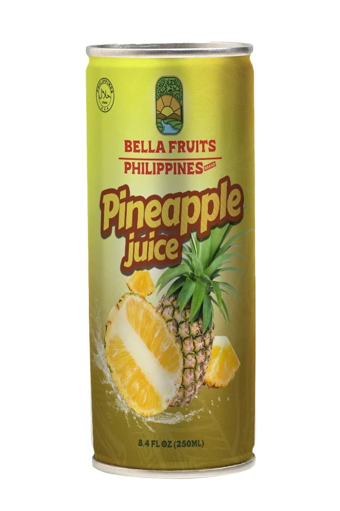 Our Bella Fruits Philippines Brand 100% Pineapple Juice is a refreshing tropical drink. Naturally made with no added sugar or preservatives and using only the finest 100% pineapple fruit rich in Vitamin C. Packed with antioxidants, enzymes and low in calories.